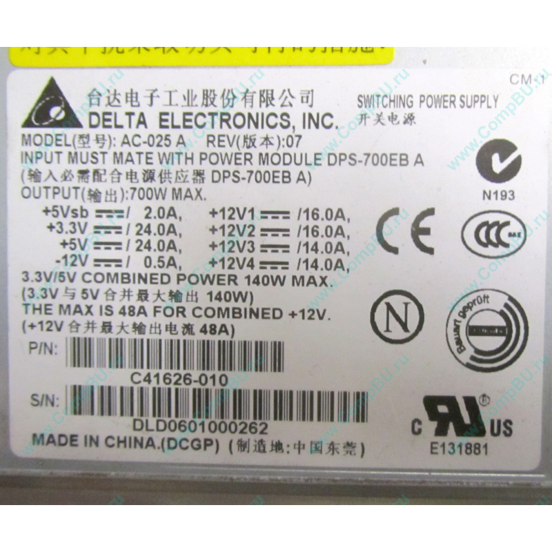 Б/У корзина C41626-010 AC-025 A Rev.07 для блоков питания 700W в серверном корпусе Intel SR2400.